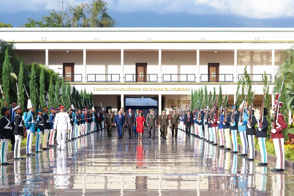 La ceremonia estuvo encabezada por el General en Jefe Vladimir Padrino López, vicepresidente sectorial de Defensa y Soberanía, quien junto a los diversos componentes castrenses rindió los honores correspondientes a la mandataria. Durante su intervención, Padrino López ratificó el compromiso inquebrantable de la institución militar con la gestión de la presidenta (E) de la República, destacando su rol como máxima autoridad para garantizar la estabilidad de la nación.