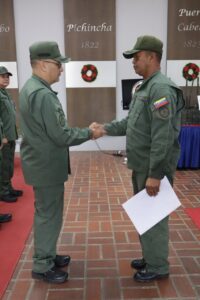Prensa Ejército— En un acto castrense presidido por el Mayor General Johan Alexander Hernández Lárez, Comandante General del Ejército Bolivariano, acompañado por directores del Estado Mayor General y del Vicealmirante Jorge Vidal Figueroa Malavé, Director de Investigación y Desarrollo del Viceministerio de Educación de la Fuerza Armada Nacional Bolivariana, se llevó a cabo la entrega de baterías y tarjetas reguladoras de voltaje PH-116 destinadas al fortalecimiento de las capacidades operativas del Ejército Bolivariano y la Armada Bolivariana, reafirmando el compromiso del Alto Mando Militar con la modernización y el sostenimiento de los sistemas tecnológicos de la Fuerza Armada Nacional Bolivariana.