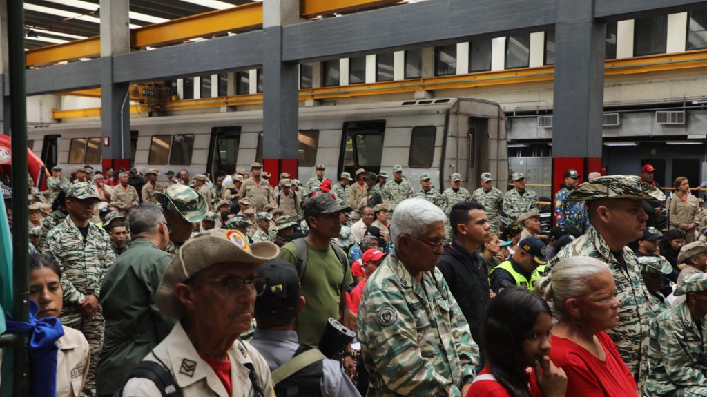 Este sábado, el Vicepresidente Sectorial de Defensa y Soberanía, General en Jefe Vladímir Padrino López, desde los patios de Trenes del Metro de Caracas, supervisó el Sábado de Milicia Comunal con los Cuerpos Combatientes de la Clase Obrera, donde constató el adiestramiento de nuestra fuerza trabajadora, siendo este el pilar fundamental para la protección de las instituciones estratégicas.