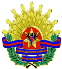 - Cinta con lema: Una cinta colocada debajo de la estrella roja central, con la leyenda «UTAN IMPEDITUS ET VERO» (Sin impedimentos y con verdad), expresa el compromiso con la transparencia y la eficacia. Debajo de esta, una segunda cinta, más pequeña indica «PERSONAL».